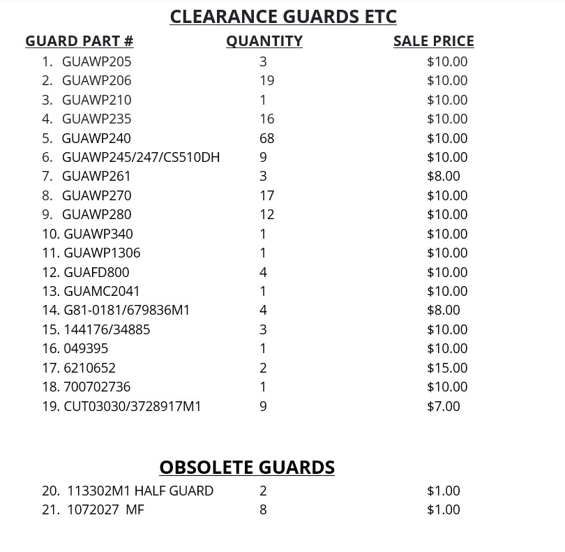 Clearance Parts