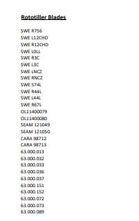 Assorted rototiller blades.