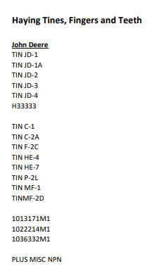 Assorted haying tines, fingers and teeth
